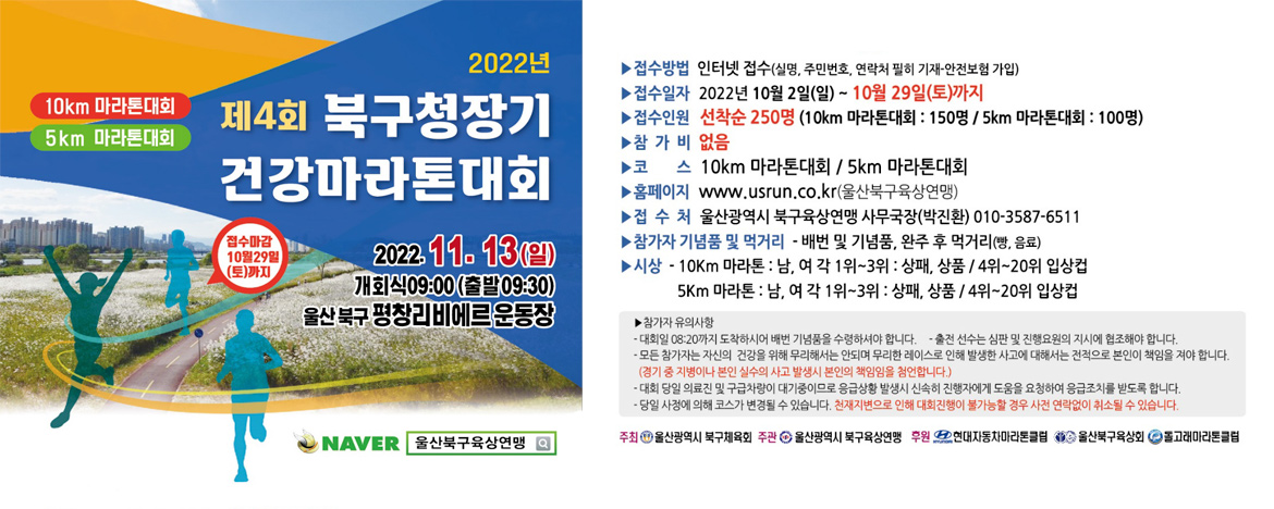 제4회 북구청장기 건강마라톤대회 (2022.11.13(일))EVENT 2022. 10. 8. 13:31반응형반응형
