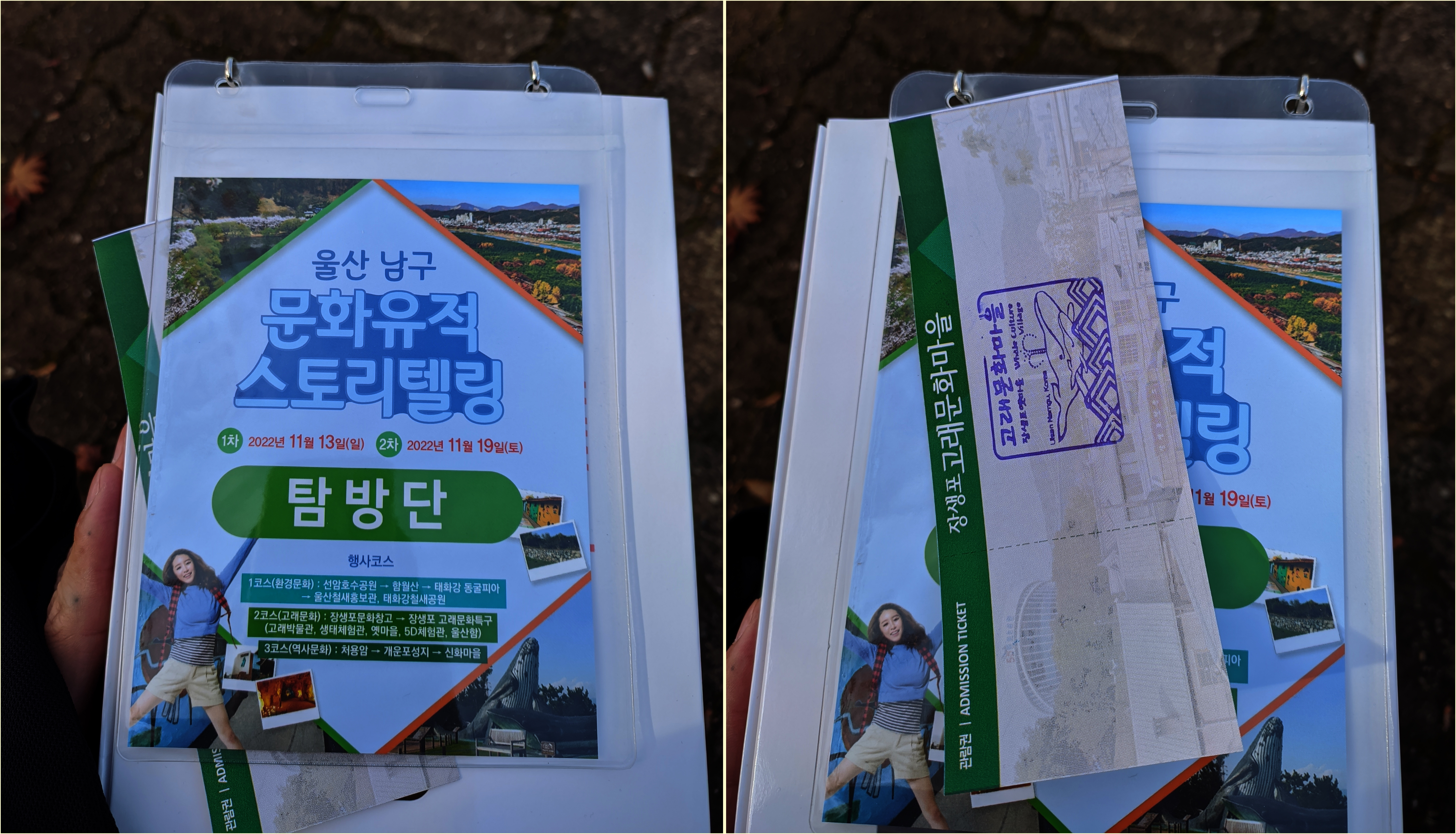 탐방단임을 확인시켜주는 목걸이형 명찰과 고래문화마을 입장권(2코스 참가자만 해당)을 수령한다.